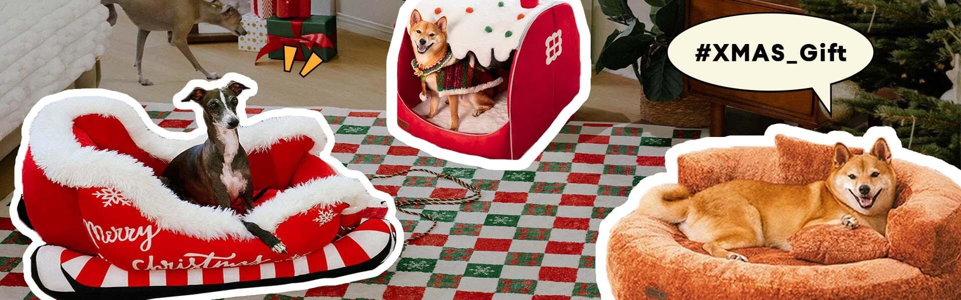 Festliches, gemütliches Hundebett aus Plüsch – Weihnachtsschlitten
