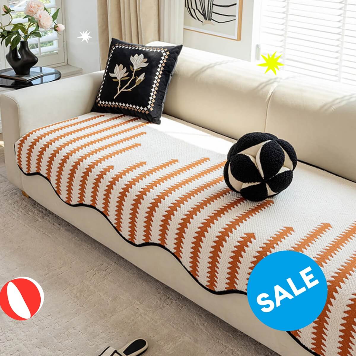 Cubierta moderna del sofá chenille de chenille chevron con bordes ondulados