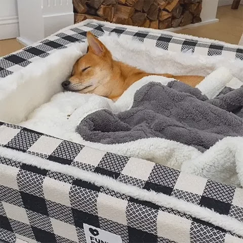 Festliches, klassisches Schottenkaro, gemütliches Anti-Angst-Beruhigungsbett für Hunde