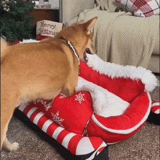 Festliches, gemütliches Hundebett aus Plüsch – Weihnachtsschlitten