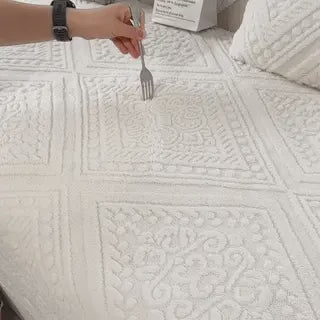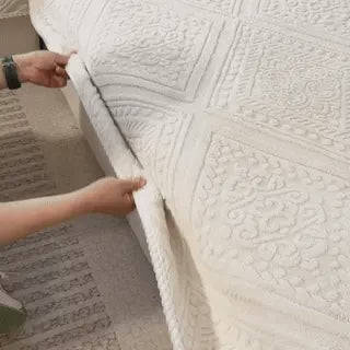 - Peluche de jacquard tallado intrincado: Elaborada con felpa texturizada de primera calidad y tejida con un delicado patrón en relieve, esta funda ofrece una sensación suave y dimensional que convierte tu sofá en una pieza destacada. Su intrincado diseño le da un toque artesanal: rica en textura, nunca plana.