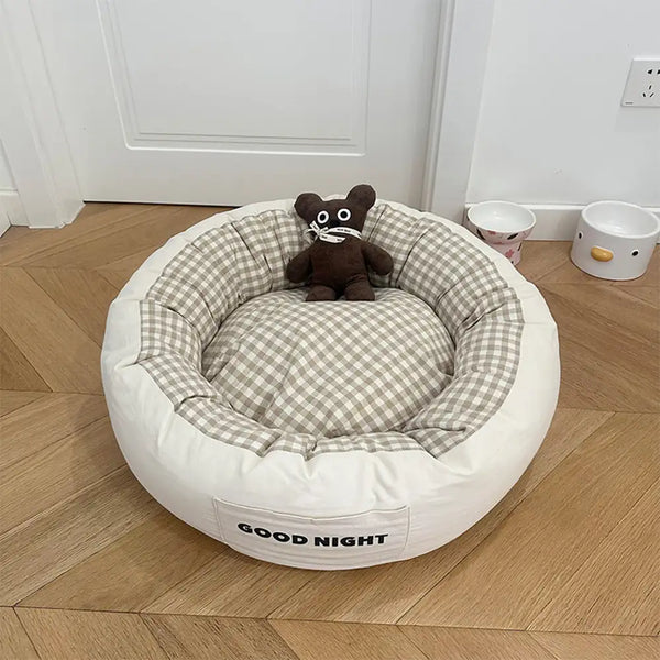 Vintage Plaid Plush Whashable Bolster Dog Sofa Bed - Chris-Nook