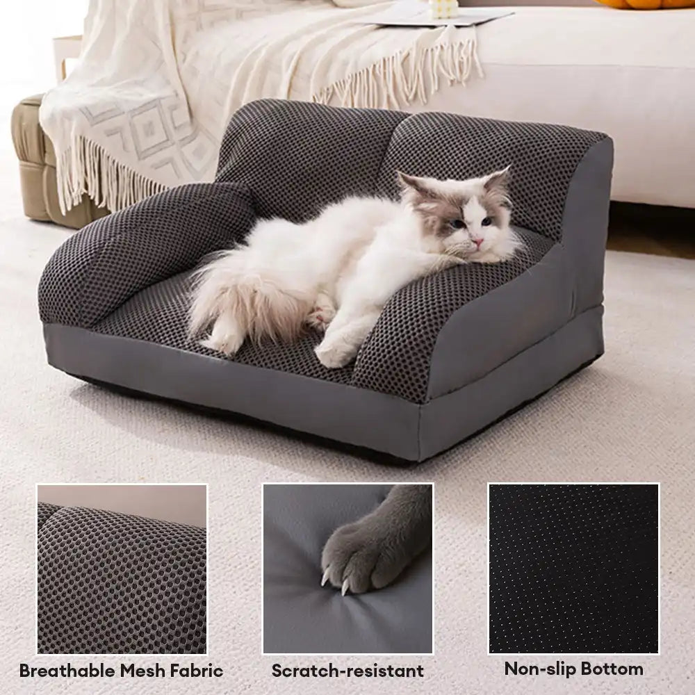 Plush Warm Stripe Orthopedic Dog & Cat Sofa Bed With Pillows- Grove Couch
