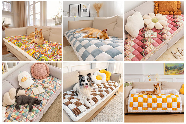 Cozy Plaid Patchwork Pet Mat Furniture Protector Couch Cover