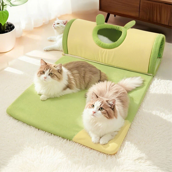 Tienda de gato todo en uno con techo rayado y área acogedora para dormir Tienda de gato todo en uno con techo rayado y área acogedora para dormir