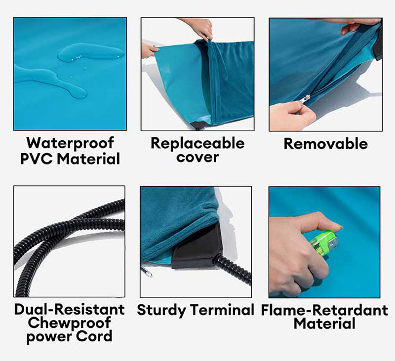 Coussin chauffant électrique imperméable et résistant aux mastications pour animaux de compagnie - Chaleur sûre