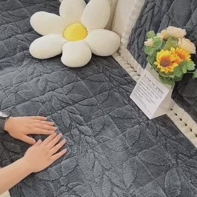 Patrón de hojas de felpa corta espesada Cubierta de sofá sin deslizamiento resistente a los rasguños