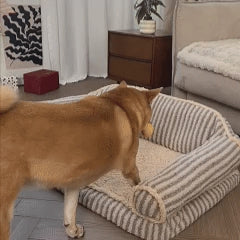 Fluffy Stripe Washable Orthopedic Dog & Cat Sofa Bed - Latte Nooki
