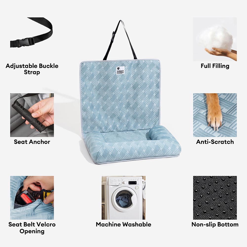 - Listo para viajar y seguro: Con una correa de seguridad ajustable, una base antideslizante y aberturas para cinturones de seguridad integradas, esta cama para automóvil permanece en su lugar, ¡no más deslizamientos en curvas cerradas!