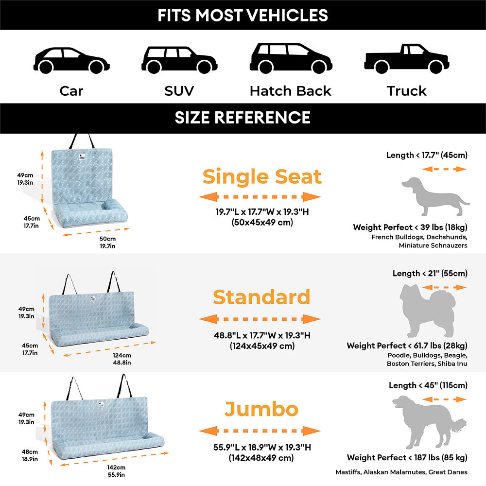 - Comodidad de enfriamiento instantáneo: Fabricada con tela refrescante avanzada, esta cama absorbe el calor y evacua la humedad, manteniendo a tu cachorro fresco y sin sudor incluso en días calurosos. ¡Dile adiós a los viajes en coche inquietos y sofocantes!