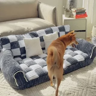 Presentamos el sofá cama extragrande para perros con soporte ortopédico y diseño de tablero de ajedrez vintage - King's Sofa, la personificación del lujo, la comodidad y el estilo para tu querida mascota. Fabricado con precisión para perros y hogares con mascotas, este cómodo sofá combina la artesanía fina con la máxima comodidad ortopédica para que tu peludo amigo duerma como nunca.